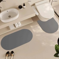 Cross-border modern minimalist solid color diatom mud carpet, absorbent and stain-resistant, household bathroom U-shaped toilet mat...