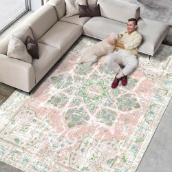 Cross-border Amazon vintage floral decorative rug, easy-care, non-slip sofa rug for large living room areas...