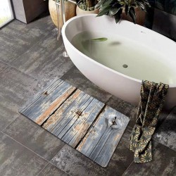 Cross-border retro imitation wood grain diatom mud floor mat for bathroom shower, non-slip, absorbent, and dirt-resistant entrance mat..