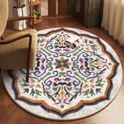 TEMU dropshipping round Persian print carpet for home use. Decorative stain-resistant bedside rug, non-slip hanging basket chair mat..